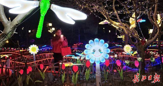 踏入东湖牡丹园,“星河花海”苗圃区瞬间抓住游客目光,万千花卉地灯如星子坠落,发光蝴蝶穿梭其间。“太梦幻了!感觉像走进了童话世界!”来自上海的游客林女士牵着女儿的手,驻足拍摄这梦幻场景。