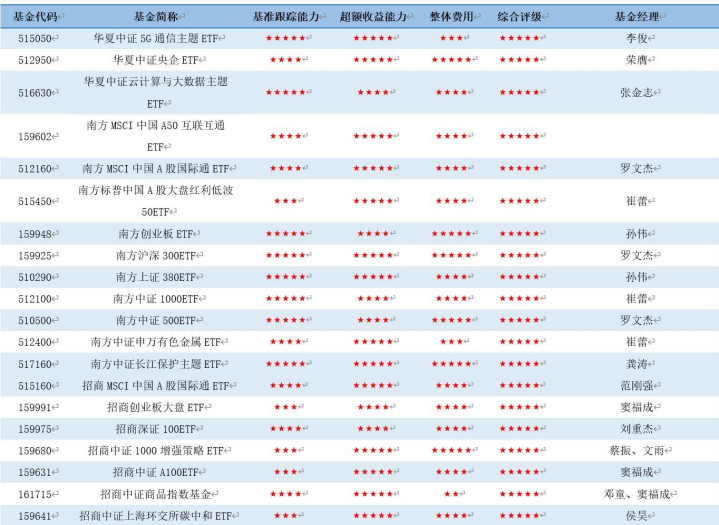 图表1 济安金信指数型五星基金列表(部分)